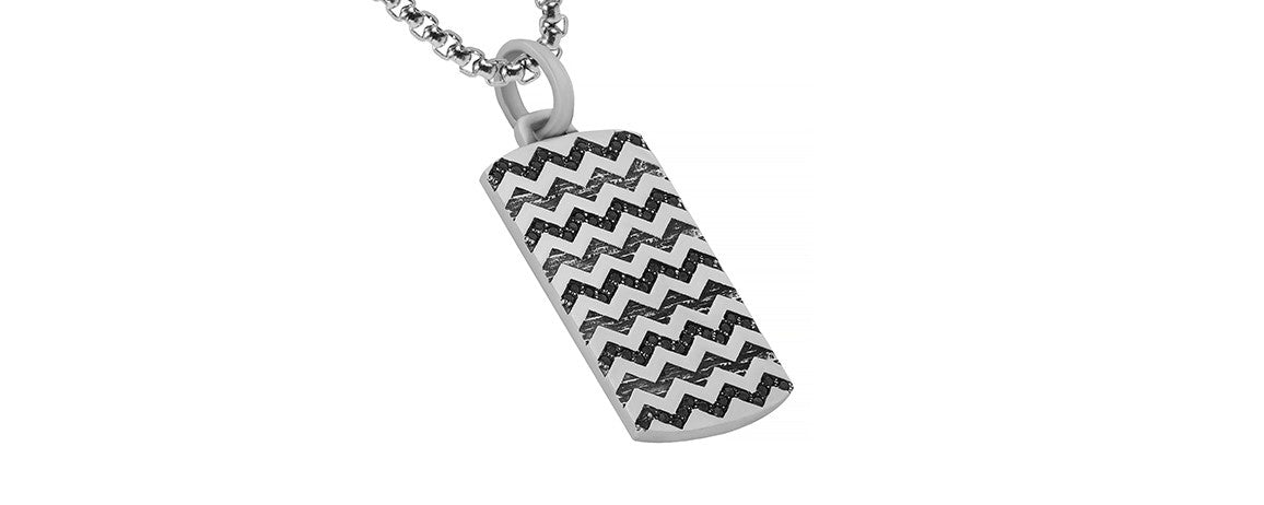 Zigzag Design Silver Dog Tag Necklace with Black Stones