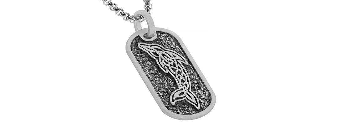 Engraved Dolphin Tag Pendant Celtic Knotwork Design