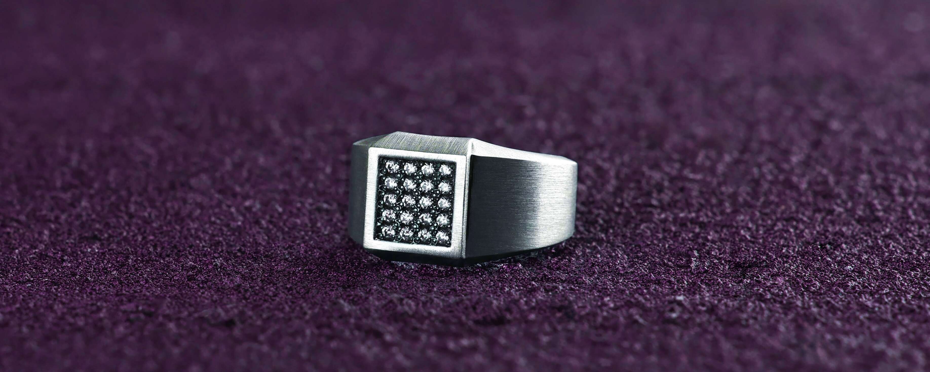 Mens Classy Silver Signet Ring with Pave Diamonds CZ