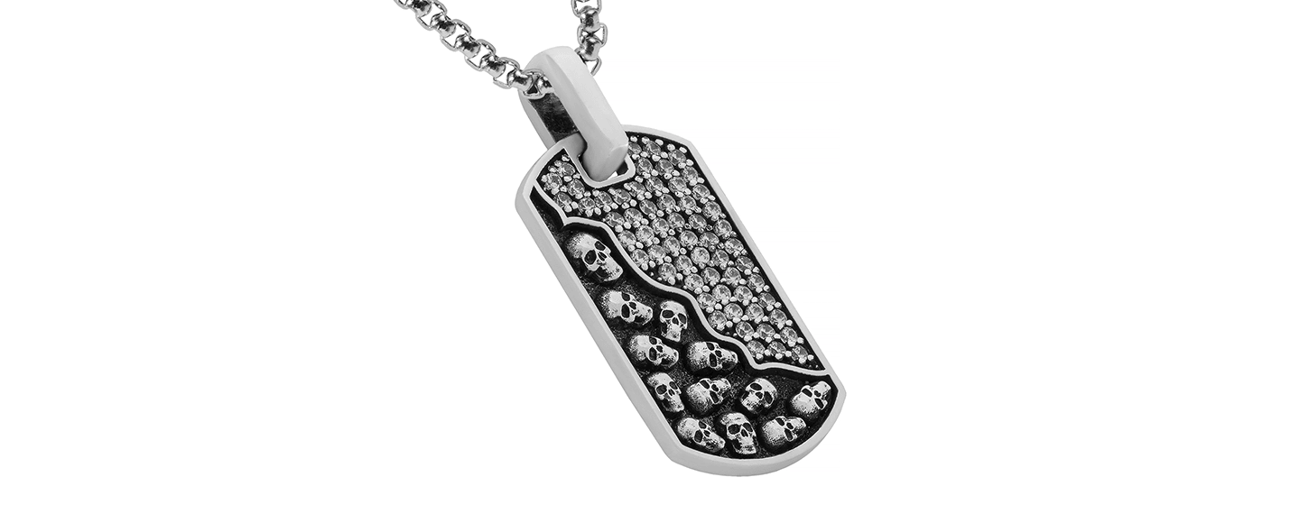 Goth Skulls Chaos Dog Tag Pendant for Men in Silver