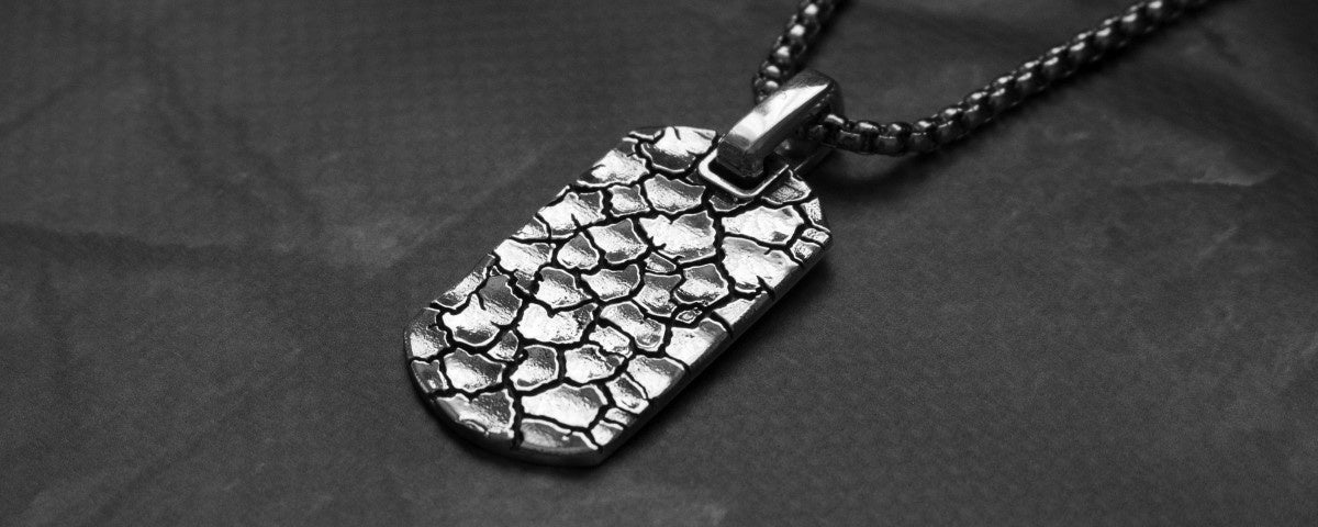 Brutal Silver Dog Tag Pendant Cracked Ground Design