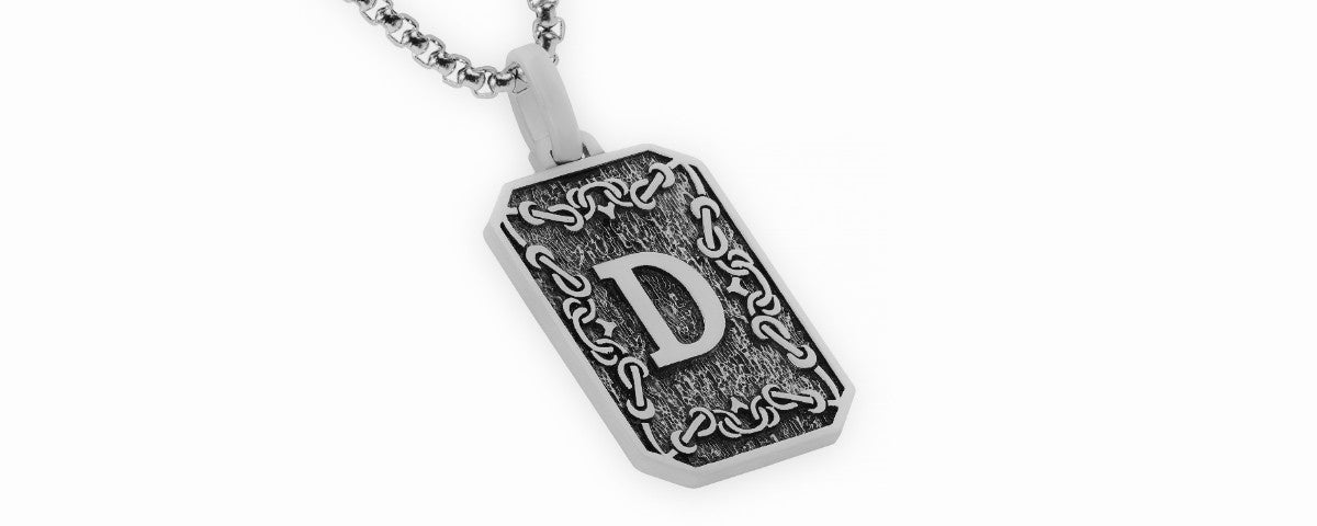 Mens Letter Dog Tag Pendant Minimalist Polished Silver