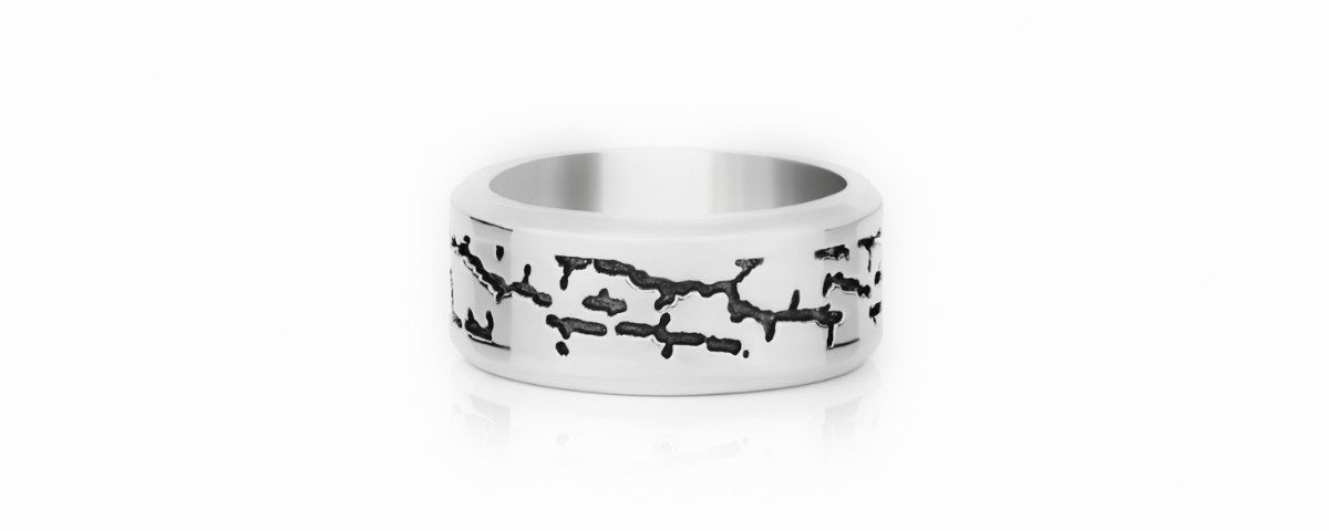 Earthy Wedding Ring for Men Silver Cracked Texture