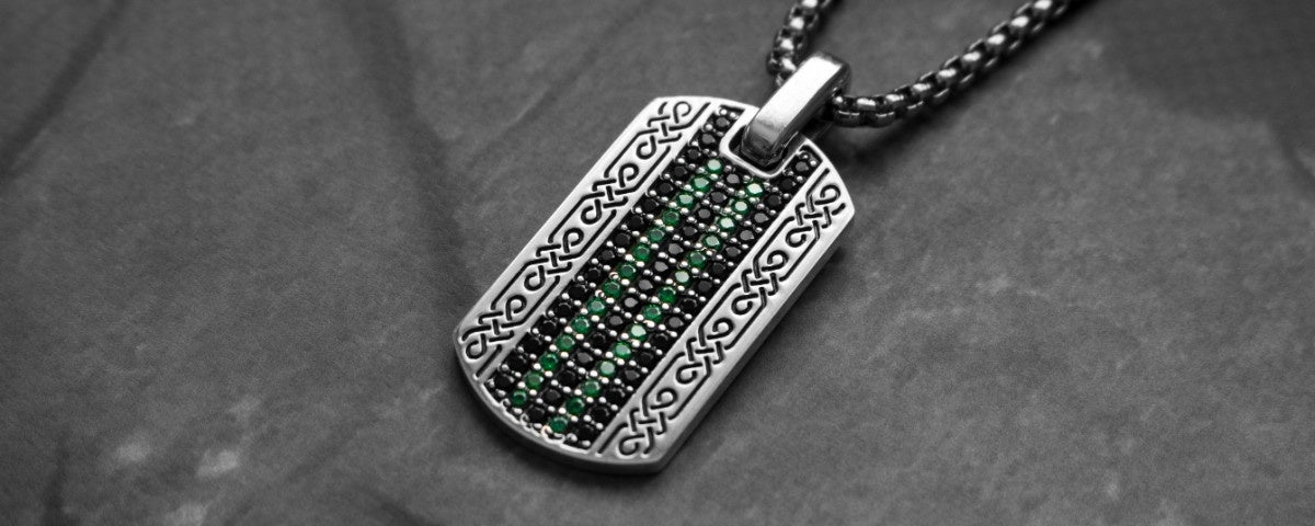 Mens Silver Irish Tag Pendant Necklace Octagon Shaped