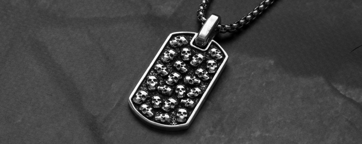 Goth Skulls Chaos Dog Tag Pendant for Men in Silver