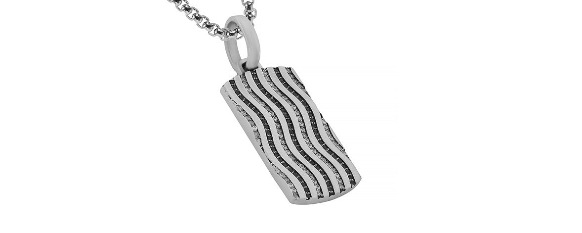 Unique Striped Silver Dog Tag Pendant with Diamonds CZ