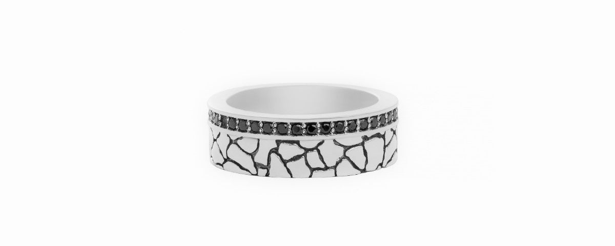 Earthy Wedding Ring for Men Silver Cracked Texture