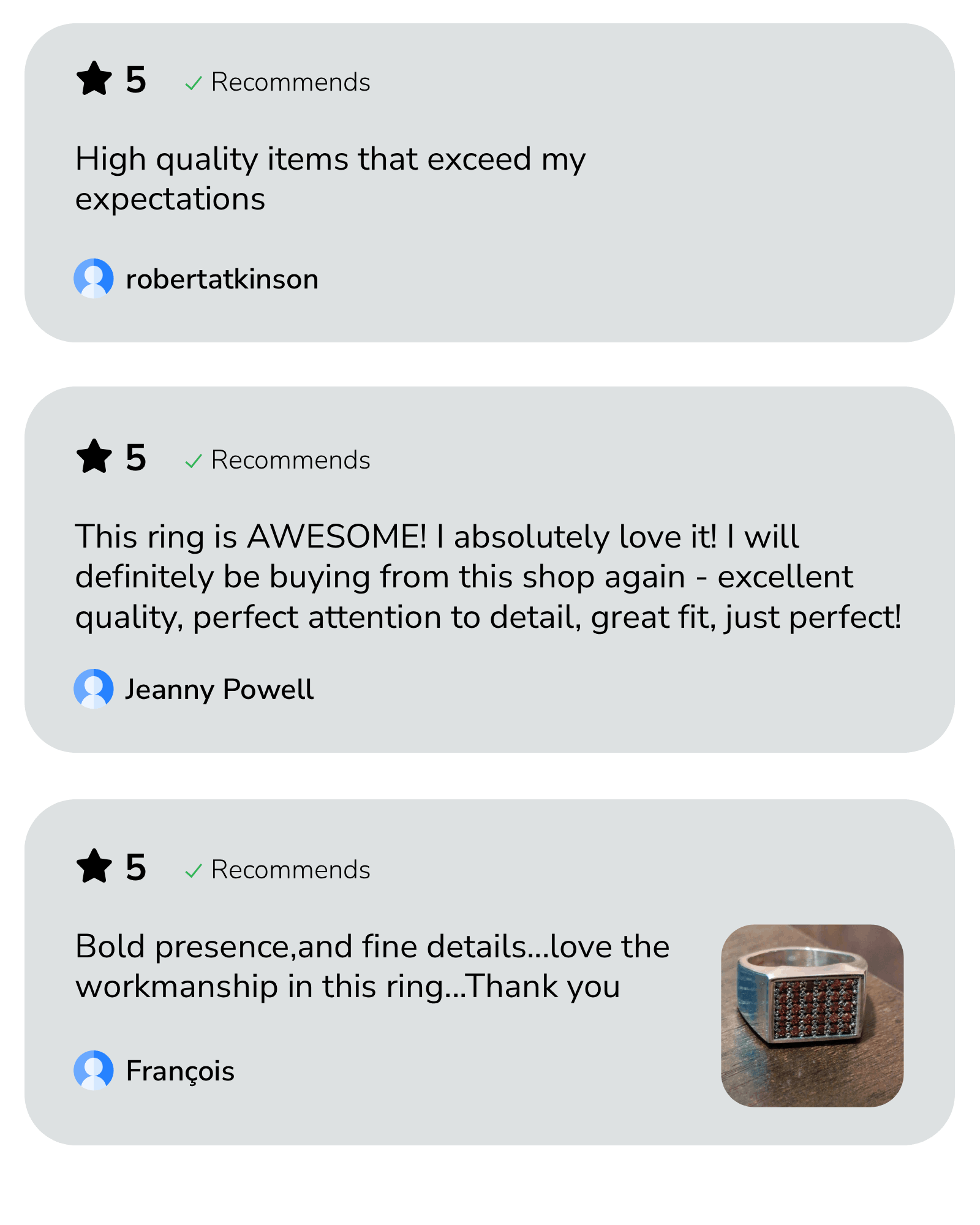 Our jewelry pieces are created individually for each customer. Crafting normally takes 5–10 days, based on the design’s complexity.